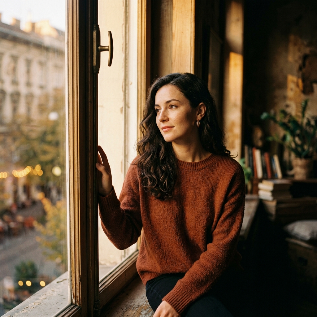 Vogue-style editorial shot with avant-garde styling and clean minimalist backdrop.